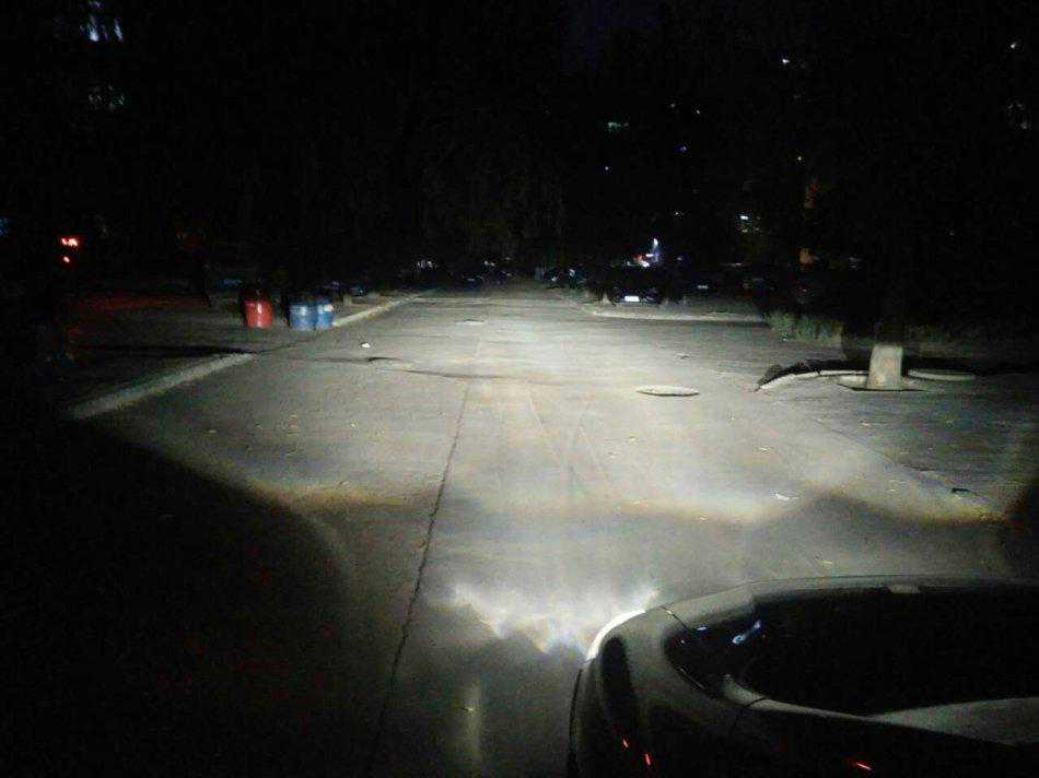 测试配置3:G1S透镜+欧司朗35W安定+飞利浦4300K氙灯,这个配置的灯泡算是飞利浦的入门级,原厂大灯一般配这个灯泡。好透镜不挑灯泡,即使是入门级灯泡,同样出来的亮度不错,只是色温会黄一点。这是8米距离的远近光效果和亮度。