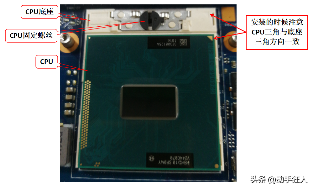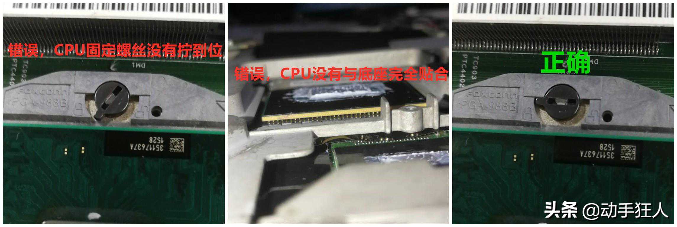 拆装这类cpu需要一把一字螺丝带即可,松开cpu固定螺丝即可垂直取下cpu,安装的时候,要注意方向,cpu上面一个金色三角形(如图1所示),这个三角形要跟cpu底座上面的三角方向一致才可以安装到位,否则无法安装,安装不到位的时候切记不可使劲挤压,否则会导致cpu针脚变形甚至掉针脚,这样cpu就基本报废了,还有其他注意安装错位的情况,如下图2所示,
