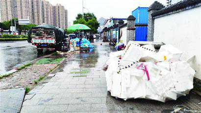“这是条主要马路,医院就在不远处,这么大一个废品回收站在这,废品都摆在路边,确实不美观,像一颗毒瘤一样。”当地居民刘女士向记者说。14日下午,记者实地查看发现,废品回收站门口道路上确实摆放着一大捆废弃泡沫箱、酒瓶、家具以及其他废旧物品。两边的废品将原本比较宽的人行道挤成一条小道,行人在路过时极不方便。天热时,还会有异味飘出,让市民苦不堪言。