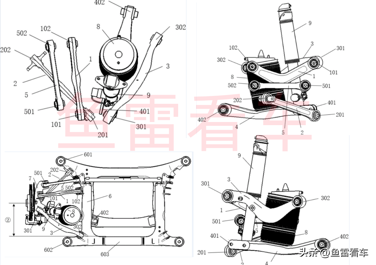▲上图为后悬五连杆铝合金悬架专利申报图