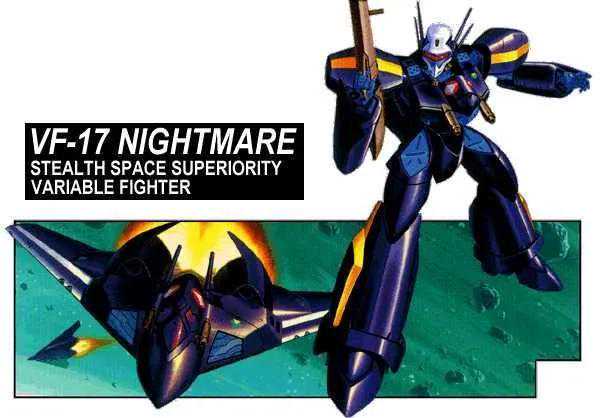 VF-17是通用银河公司开发的特殊作战机型,当时的统合军主力机种VF-11考量到操控适易性而必须牺牲部份性能,故无法担任特战机种进行精密攻击,于是军方计划设计开发一款拥有高匿踪性的特殊机种。最终设计机体为了减少雷达侦测面积因此设计出呈现三角形的特殊外观,因优异的匿踪性及机动力而被称为“梦魇”。2037年时Macross7船团的特殊防卫部队——“钻石武力”(DiamondForce)小队即配置了VF-17S。
