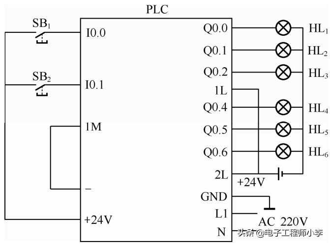 图7.54某交通路口红、黄、绿交通灯PLC控制I/O接线图