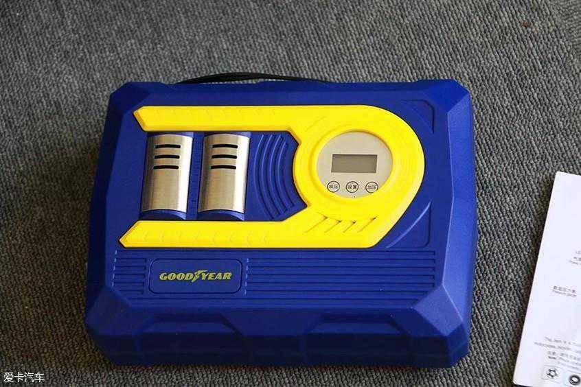 固特异GY-2852,是一款双缸车载充气泵,适用于普通车用轮胎。外观呈长方形,塑料外壳,正面有两条金属管,右侧是显示器和胎压预设按钮,可以设置胎压高低。