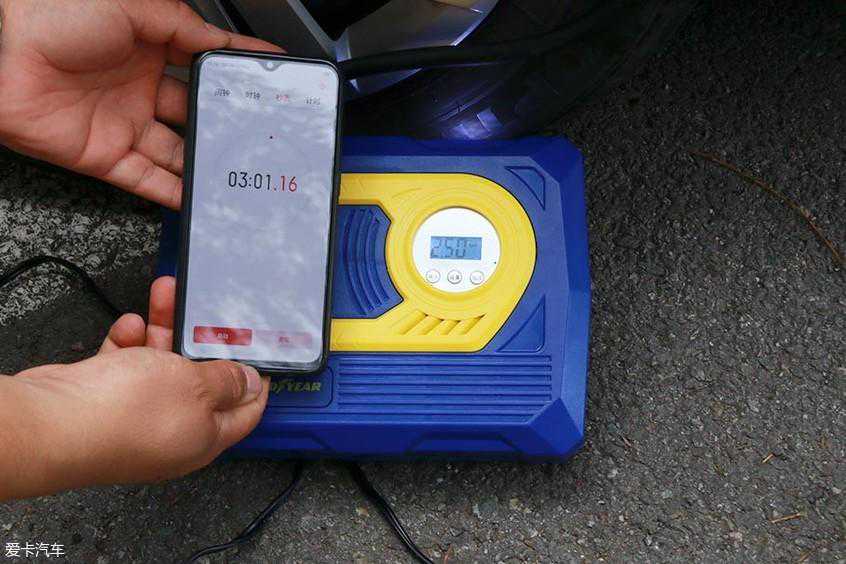 接下来将胎压调整到2.5BAR,开始计时充气。