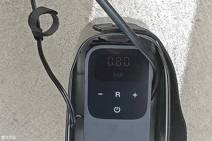 接下来测试的是米其林,中间黄色按钮是设置键,同样拥有三个单位可选择。先设置好数值,将胎压降低到0.8BAR。