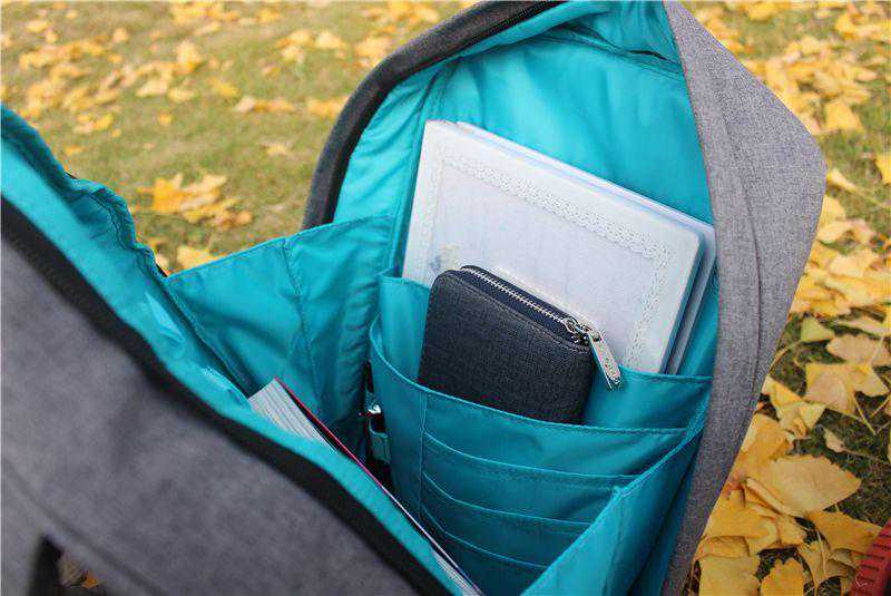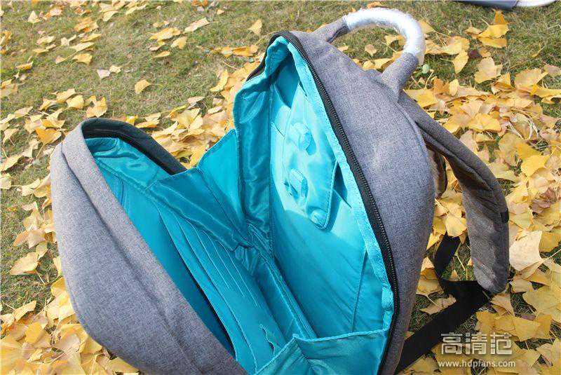 整个背包内衬为天蓝色,小清新气息非常浓厚,内衬设计层次分明,口袋、夹层分布合理,作用丰富,可以说出门需带的物品位置都有考虑,亲爱的朋友们可以根据自己的实际需要携带物品,总能在里面找到属于它的“小天地”。