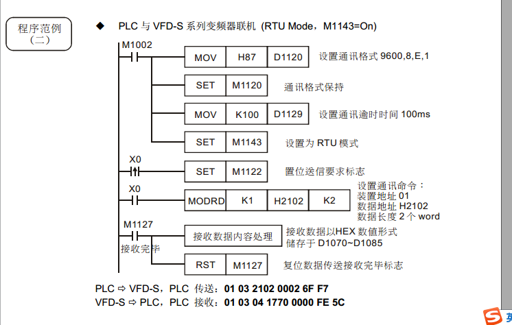 以上是台达plc的modbus读指令,modbus的写指令和读指令差不多,大同小异。