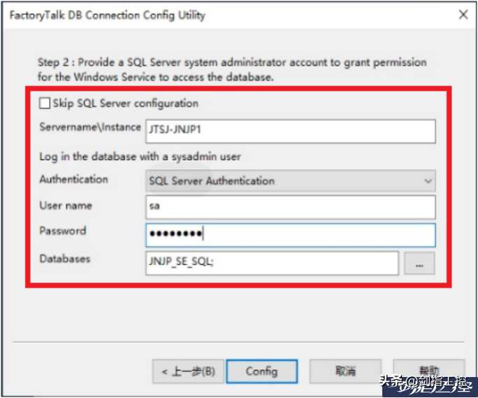 4、FactoryTalkDB连接配置实用程序:(1)“⑤”配置Windows身份验证(图2);(2)通过Windows身份验证配置访问SQLServer数据库;(3)选择在每个应用程序上用于访问数据库的用户账户类型:选择Windows内置网络服务用户(图3);