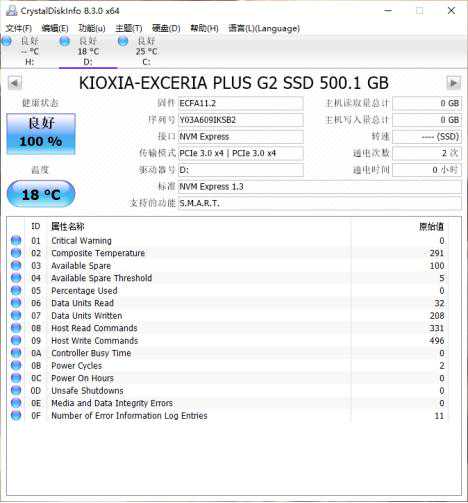 EXCERIAPLUSG2500G采用的固件版本是,相比于老版的,做了不少的优化。传输协议,*4传输模式。我们拿到是一块真正的新盘。对了,铠侠还提供自家的SSDUtility软件,也可以查看SSD的信息及运行状况。
