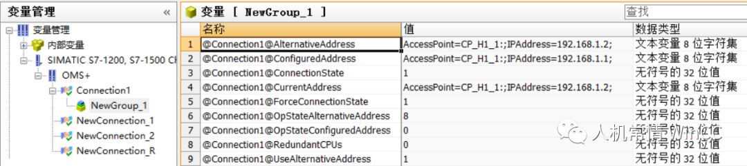 “@connectionname@RedundantCPUs”:指示所连接的控制器是否冗余,设置为1:代表所连接的PLC是S7-1500R/H,设置为0代表所连接的PLC是非冗余的S7-1200/1500。这里设置初值为1。