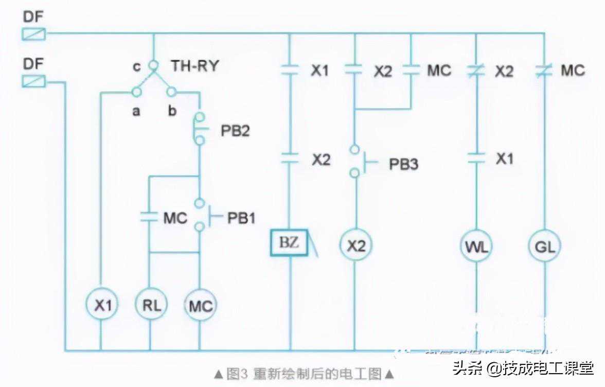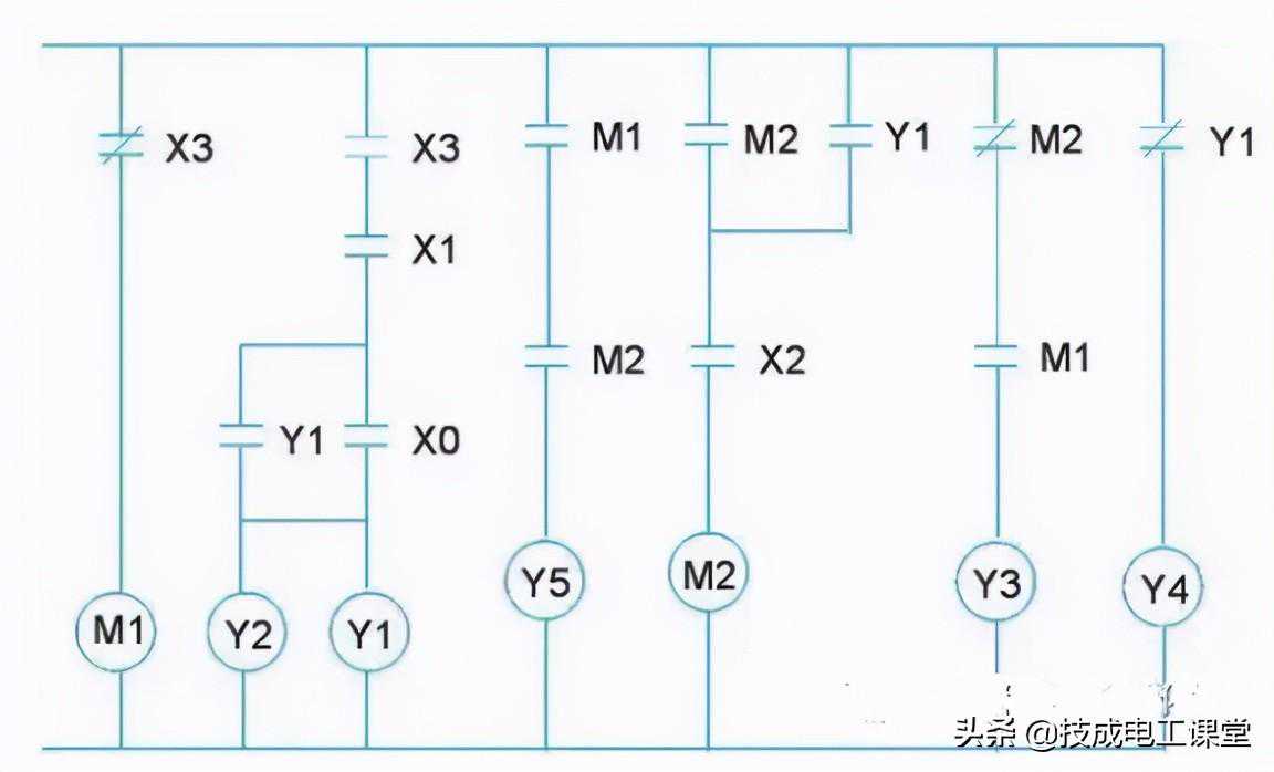 (3)将图4所示的电工图,向左旋转90°,之后再垂直翻转(upsidedown),即可成为PLC阶梯图,但因: