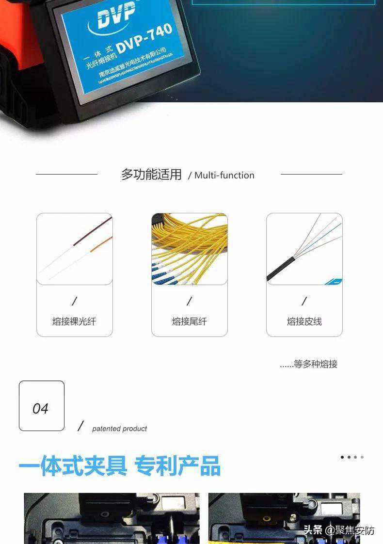 DVP-740光纤熔接机是继DVP-730光纤熔接机之后迪威普光电公司2014年最新研发的一款国产多功能一体光纤熔接机。DVP-740光纤熔接机采用了最新的多功能一体夹具,可以同时熔接皮线光缆、室内跳线和裸光纤,真正做到了一机多用。新出的DVP-740光纤熔接机外形小巧轻便,新增加了橡胶保护套,以达到更好的减震效果,界面友好简单,熔接快捷精准,可广泛应用于通信、广电、铁路、石化、电力、部队等通信领域的光纤光缆工程和维护以及科研院所的教学与科研。
