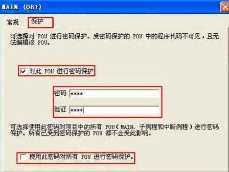 2.选择保护选项,并对POU进行加密。