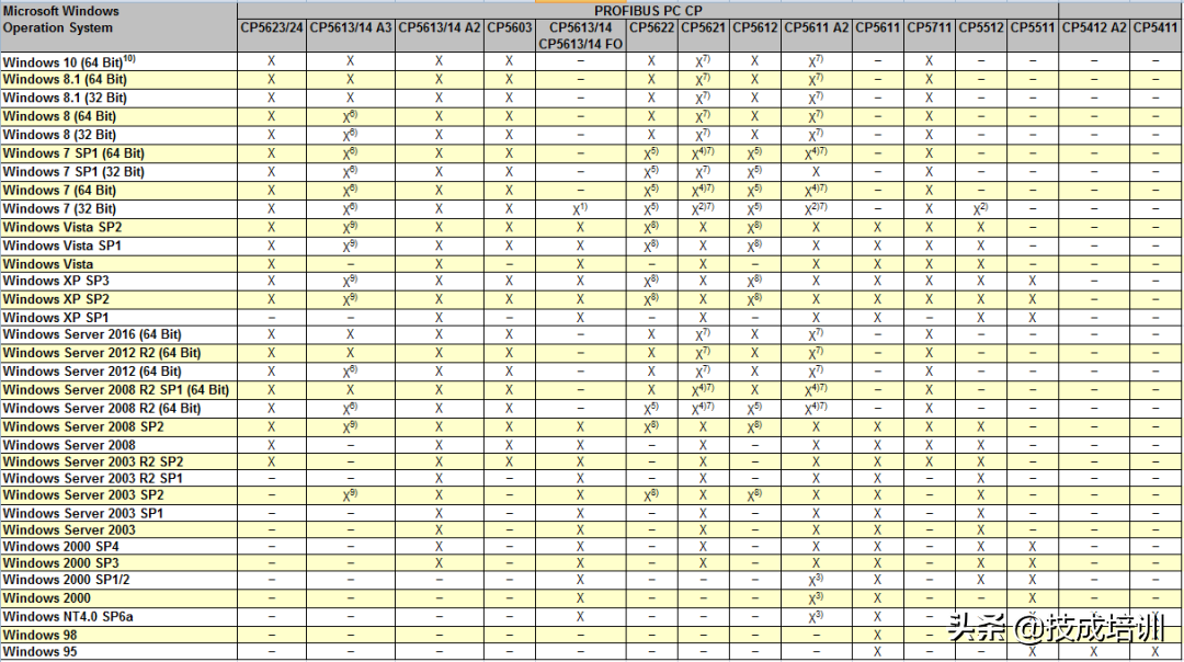 三、西门子工业以太网CP卡与操作性兼容表