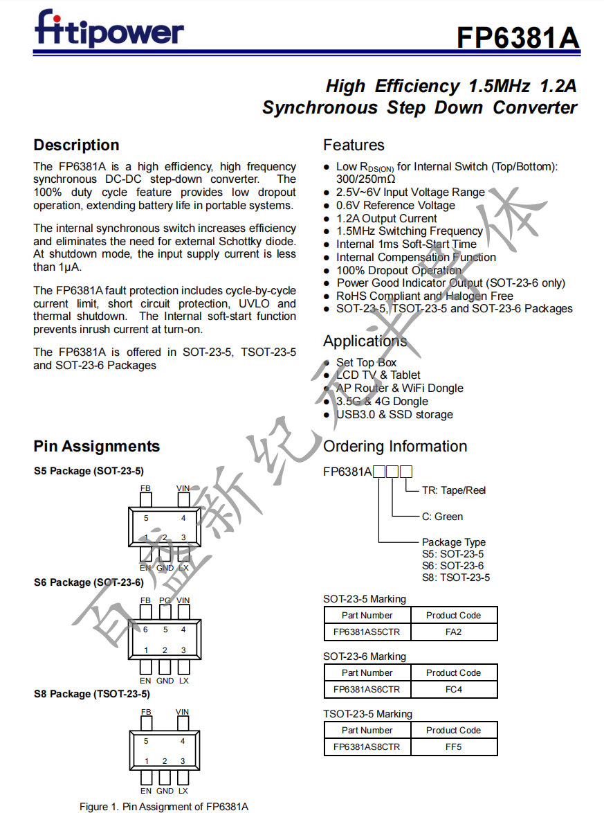 FP6381A可提供了SOT-23-5、TSOT-23-5和SOT-23-6软件包。