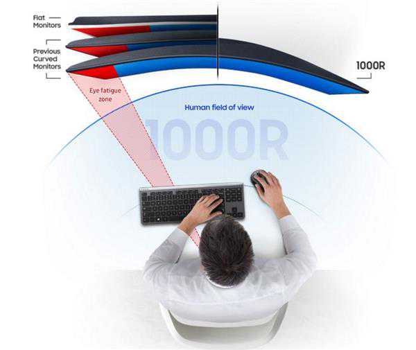 曲率代表了显示器的完全程度,目前好一点的曲面显示器曲率可以达到1800R,也就是半径为4米的圆所弯曲的程度;再好的话就是1500R,而T55的1000R曲率表示弯曲半径只有1米。