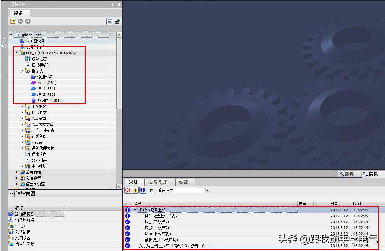 1、在项目树中选择项目名称。在“在线”(Online)菜单中,选择“上传设备作为新站(硬件和软件)”(Uploaddeviceasnewstation(hardwareandsoftware))。打开“将设备上传到PG/PC”(UploaddevicetoPG/PC)对话框。