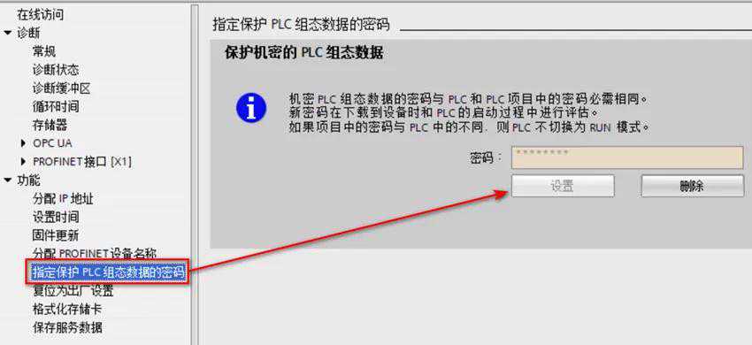 图16.在线和诊断中删除或设置密码
