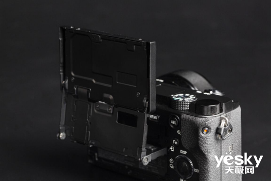从翻折结构的细节来看,Alpha6100相交于以往机型增加了一块纵向翻折模块。机械结构带有阻尼感,段落处有锁止设计可方便用户在实际拍摄中的可靠性。