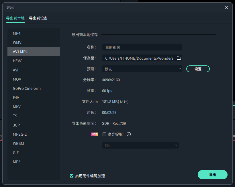 万兴喵影也提供了AV1编码的支持,