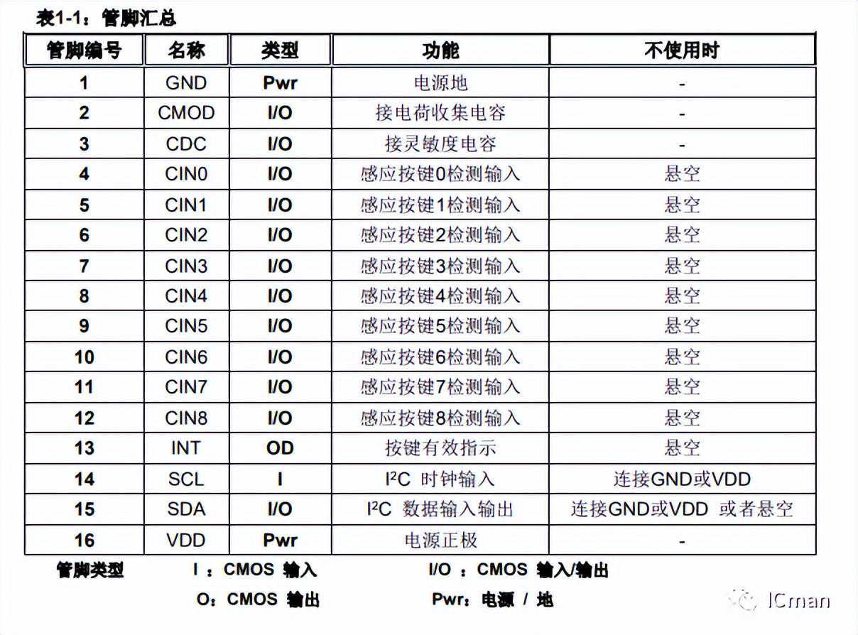 灵敏度由CDC端口接的电容值决定。电容范围是最小5pf,最大100pf。数值越小,灵敏度越高。为了保证灵敏度的一致性,CDC电容要求使用10%或以上的精度的涤纶电容、NPO材质电容或者COG材质电容为最佳。务必在PCB布局时,将CDC电容尽量贴近IC放置。