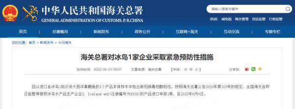 海关总署对冰岛1家企业采取紧急预防性措施