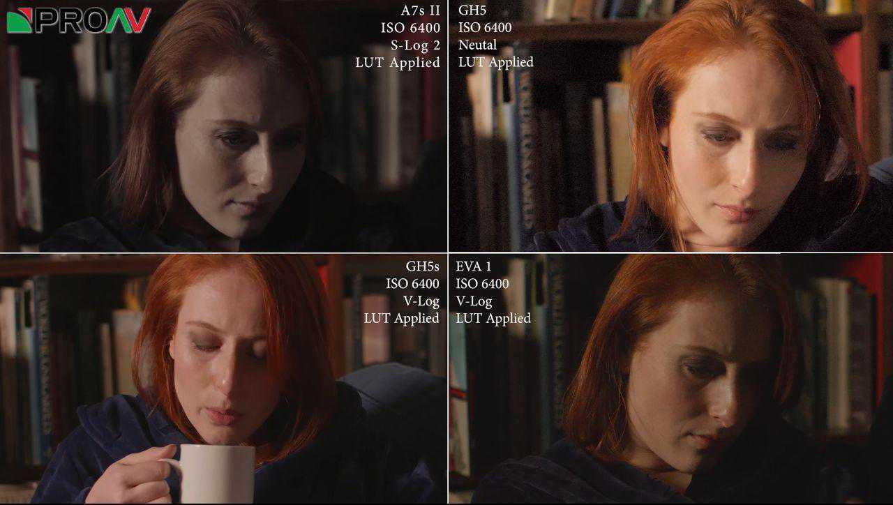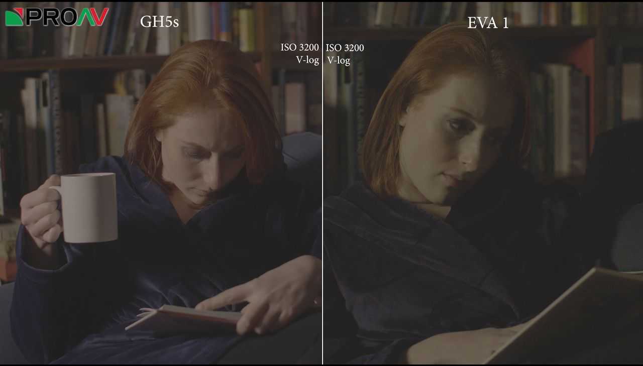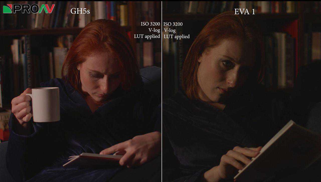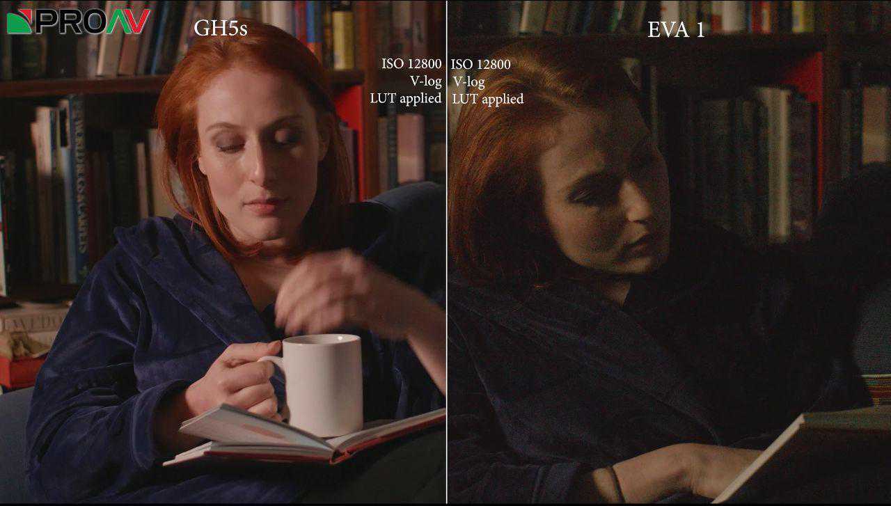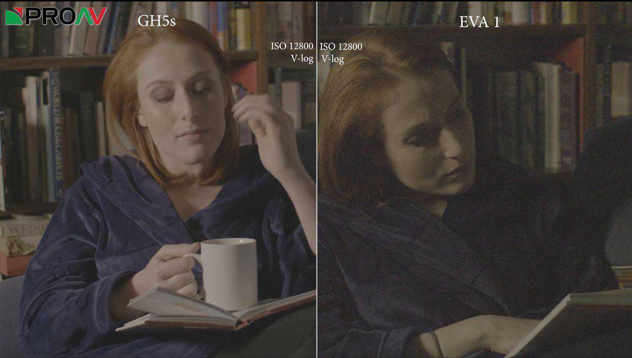 接着对比松下专业影像——专业的电影机EVA1,这就不得了了,EVA1底大得多,而且拥有双原生ISO(GH5S也有)。通过画面可以看出,EVA1在ISO6400和12800时噪点更加明显,我认为这是因为EVA1的双原生ISO更低。