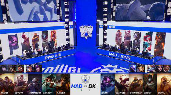 北京时间10月24日晚,2021英雄联盟全球总决赛四分之一决赛的第三场较量由LCK一号种子DK对阵欧洲LEC一号种子MAD!首局DK三线全面压制,大优势先下一城后MAD在第二局前期“军训”上路打开了突破口,但中期团战Khan的凯南两波“天雷”完成了翻盘,最终DK有惊无险3-0零封淘汰MAD,同T1会师四强!