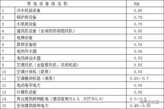 注明:建筑电气计算中变电所的综合同期系数,可作为估算时使用,即: