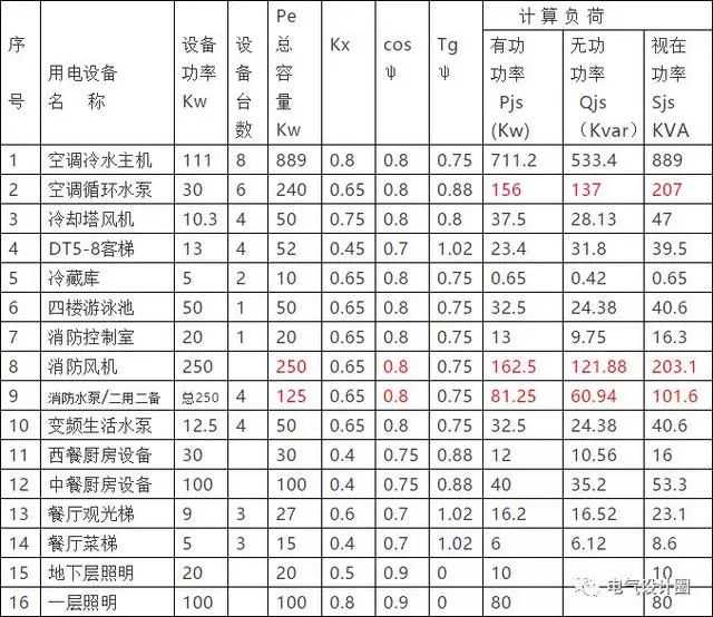 总视在功率计算负荷∑Sjs=√ ̄(∑Pjs)2+(∑Qjs)2。