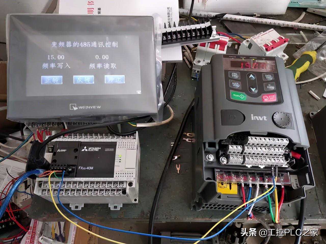 需要的硬件:三菱FX3G型PLC,485通讯模块(FX3G-485BD),变频器一台英威腾,触摸屏(MT6071IP)。