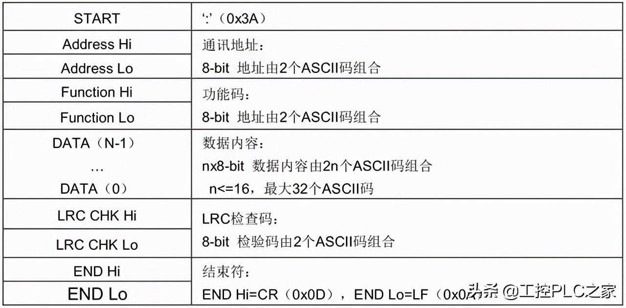 数据内容DATA:就是要写入或读取的数据内容,由2n个ASCII码组成。