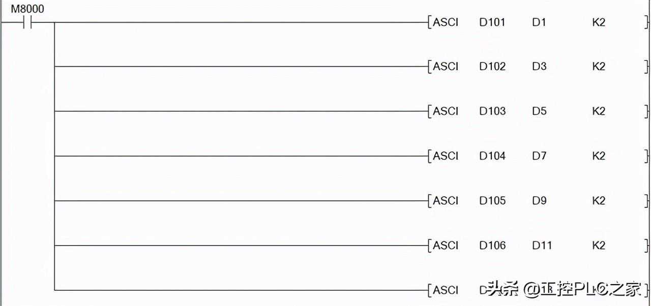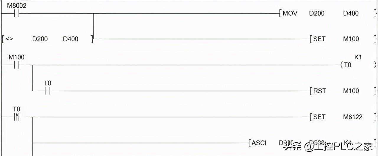 M8122是送信指令,表示在发送信息,为频率数据,将D200数据转换成ASCII,例如D200=0ABCH,K4就表示D500=0,D501=A,D502=B,D503=C,只转换4位。