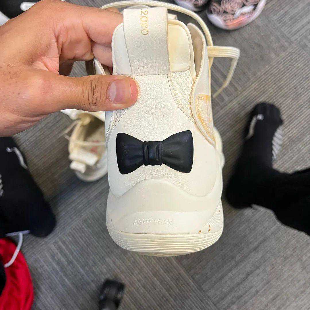 近日,CJ结婚一周年到来,李宁又为他打造了一款婚礼配色的CJ1签名鞋。