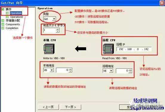 第二步、选择向导里面的GET/PUT操作,进行需要通信数据的组态,配置向导的工作只需要在本地站(主站)进行不需要在远程站(从站)进行。如图