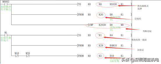通过上面的的配置和编写就能在PLC上读取温度,要是想弄明白这温度模块,得要好好看这个模块的说明书,然后还得会用FROM和TO这两个指令。不管是TC温度模块、AD模块、DA模块、定位PG模块等等都会用到这两个指令。