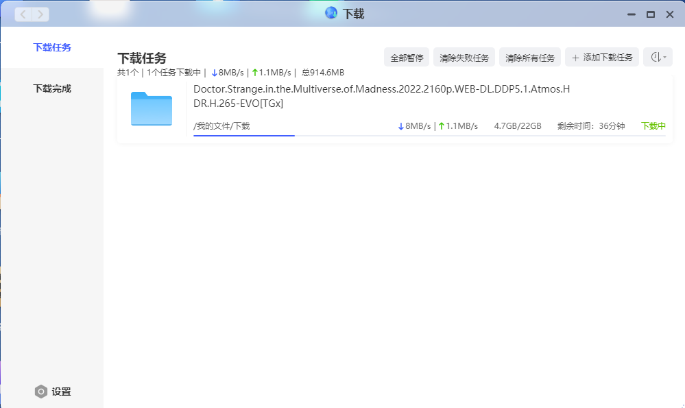 因为极空间本身就可以通过外网访问,平时在群里看到下载资源就可以通过链接下载。下载速度和站点做种有着密切的关系,以及机器的设置也有关,一般选择做种多的,下载速度快,活跃的种子下载也会快些。我最近下载奇异博士2的时候有8m/s。每个家庭的使用环境不一样,速度是会有偏差。