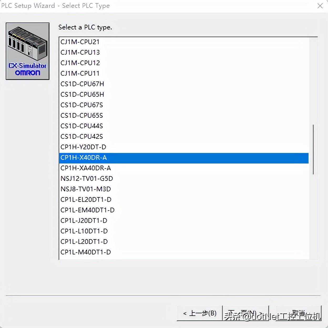 6、这里选择一个CPU类型,我这边选一个常用的CP1H系列PLC。
