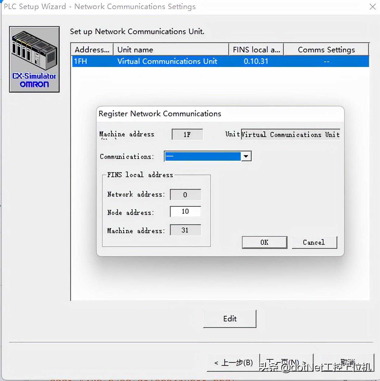 8、PLC设置向导之网络通信设置,这里可以设置的是节点地址,默认是10。