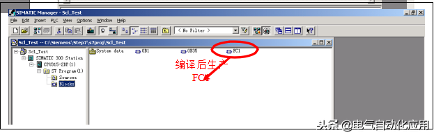 经过以上四步,就完成了一个用SCL编写功能块的全过程,FC1的源程序,保存在“Sources”文件夹中,可随时打开进行修改。