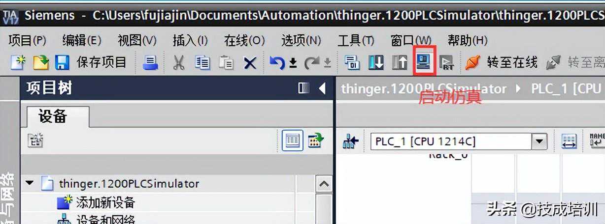 9.设置完成后,在博图的工具栏中,启动仿真图标,必须提前安装好PLCSIM。