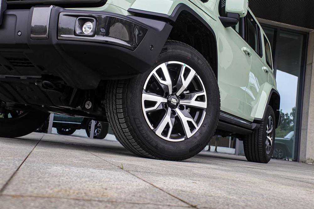 相比越野版车型原厂粗旷的轮圈和AT胎,城市版车型原厂则配备了全新设计的双色轮圈,匹配更加偏向城市通勤属性的米其林PrimacySUV轮胎,轮胎的规格为265/60R18,可以实现比越野版更好的舒适性与静音效果。