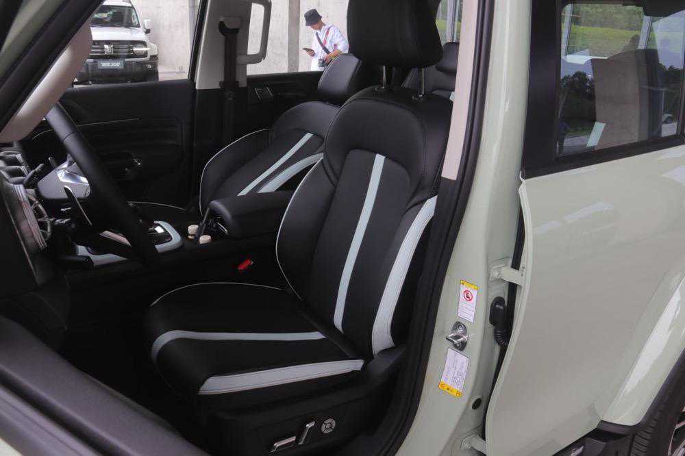 座椅方面,城市版车型整体造型与越野版相同,并提供了与车身同色的撞色设计,我们实拍车型配有Nappa真皮座椅,且主副驾均采用电动调节,并带有通风/加热功能。后排座椅功能一样齐全,独立空调出风口、双USB接口、中央扶手等一应俱全,后排座椅支持4/6比例放倒得到纯平面空间,同时盖板也可以与原厂支架组成小桌子,延续了越野版的实用性。