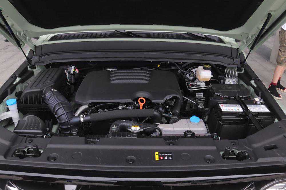 前后扭矩分配在0-100%,在4L模式下可实现2.48倍扭矩放大。得益于原本前双叉臂式独立悬架+后成体桥式非独立悬架的基础,配合ATS全地形控制模式、坦克转弯与蠕行模式等软件的帮助,即便是城市版车型也能胜任一些非铺装路面的行驶场景。