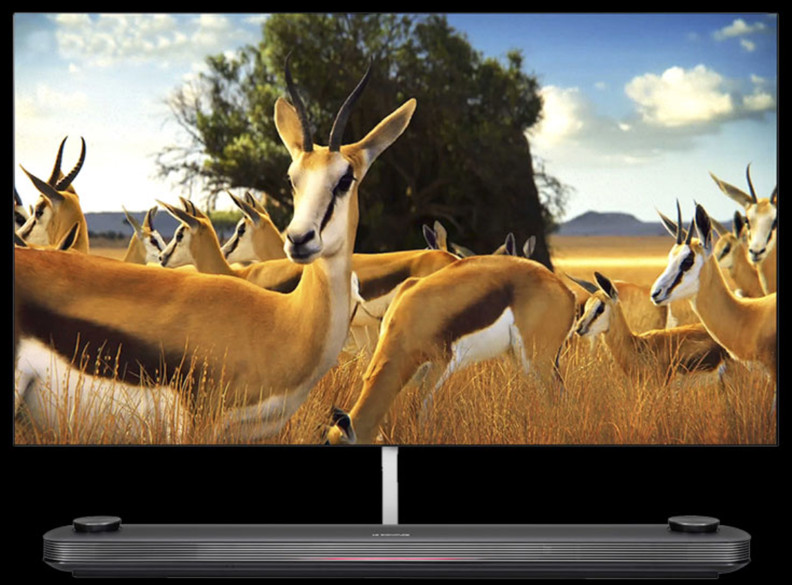 W9天空之镜壁纸电视则采用LG自主研发大尺寸OLED面板,厚度仅约2.57mm,如壁纸一样轻薄,可以融入任何家居风格当中,为用户在家居装饰方面也提供了更多选择。