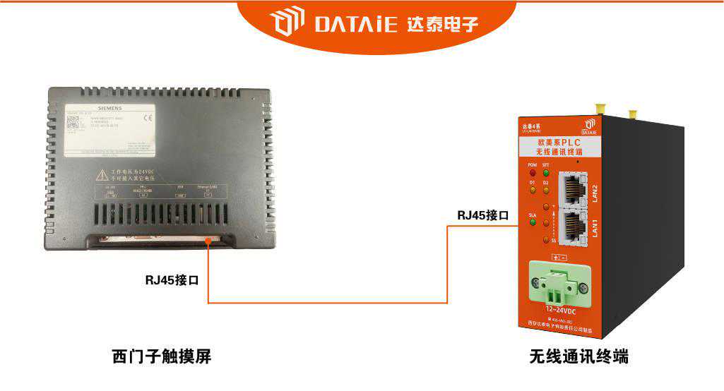 用一根通讯线,一端接入DTD418M的RJ45接口,另一端接入西门子触摸屏的RJ45接口。