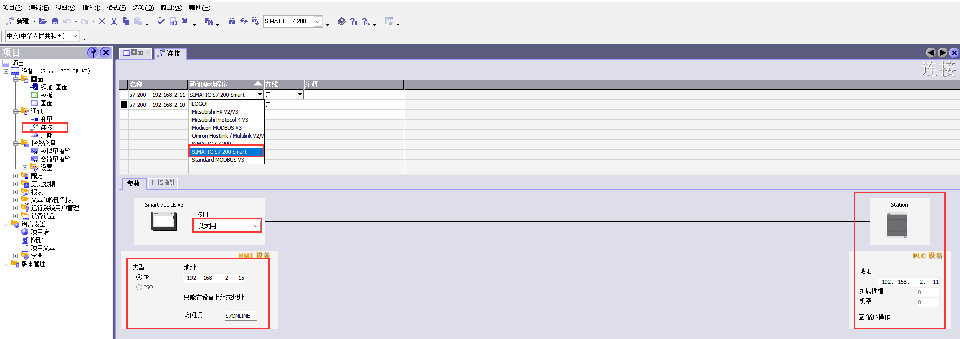 2.配置触摸屏和2台PLC连接