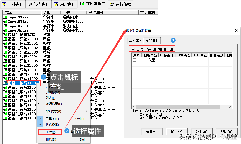 检查下实时数据库M1000~M1009的报警信息有没有自动保存,默认情况下是自动保存的。