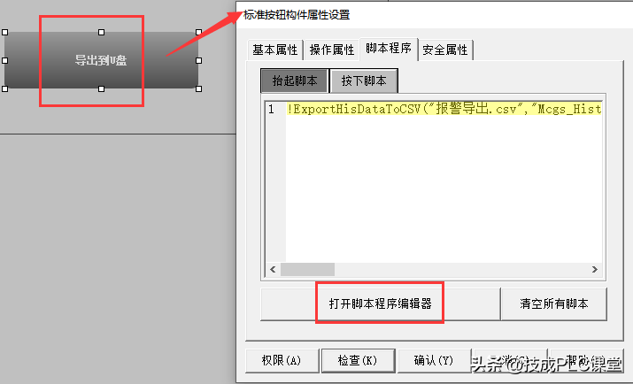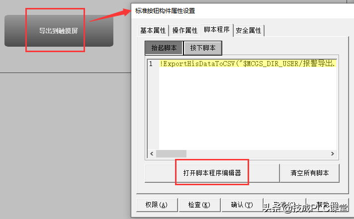 双击导出到触摸屏的构件,打开脚本程序编辑器;