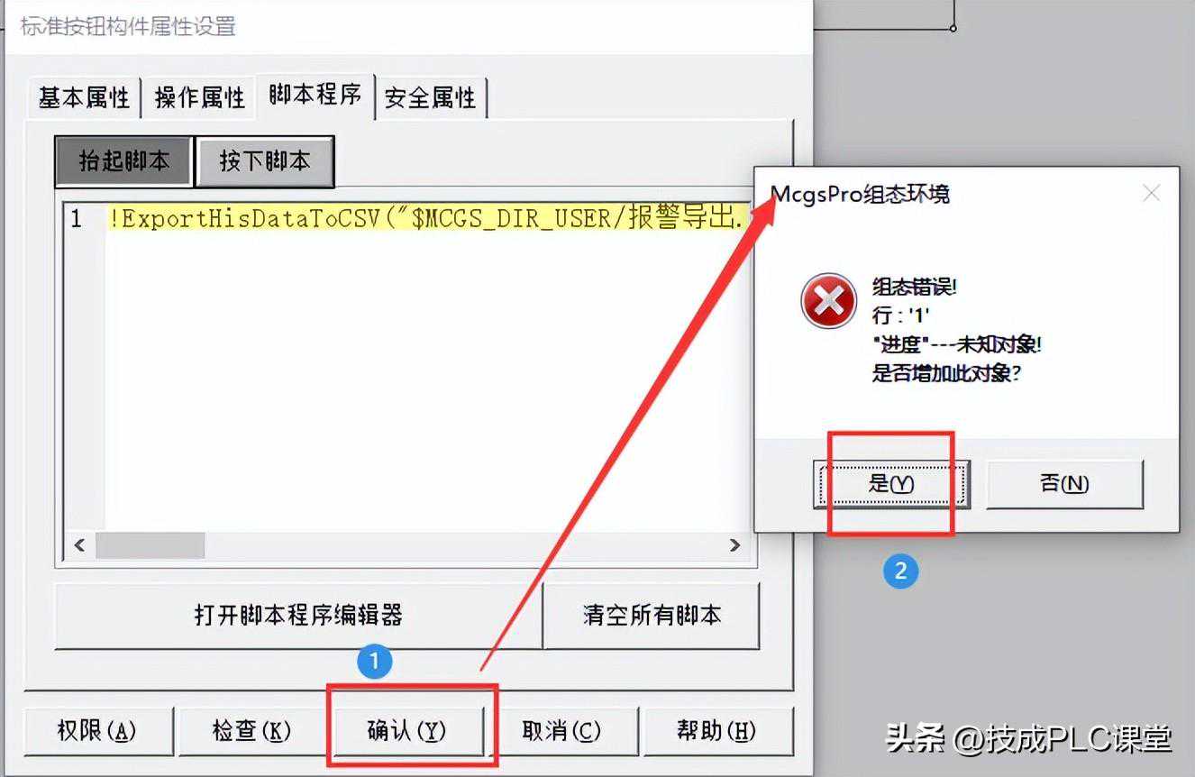 !ExportHisDataToCSV("报警导出.csv","Mcgs_HistoryAlarm","","2023/12/010:0:0","2024/12/010:0:0",5000,1,"",进度,控制)
